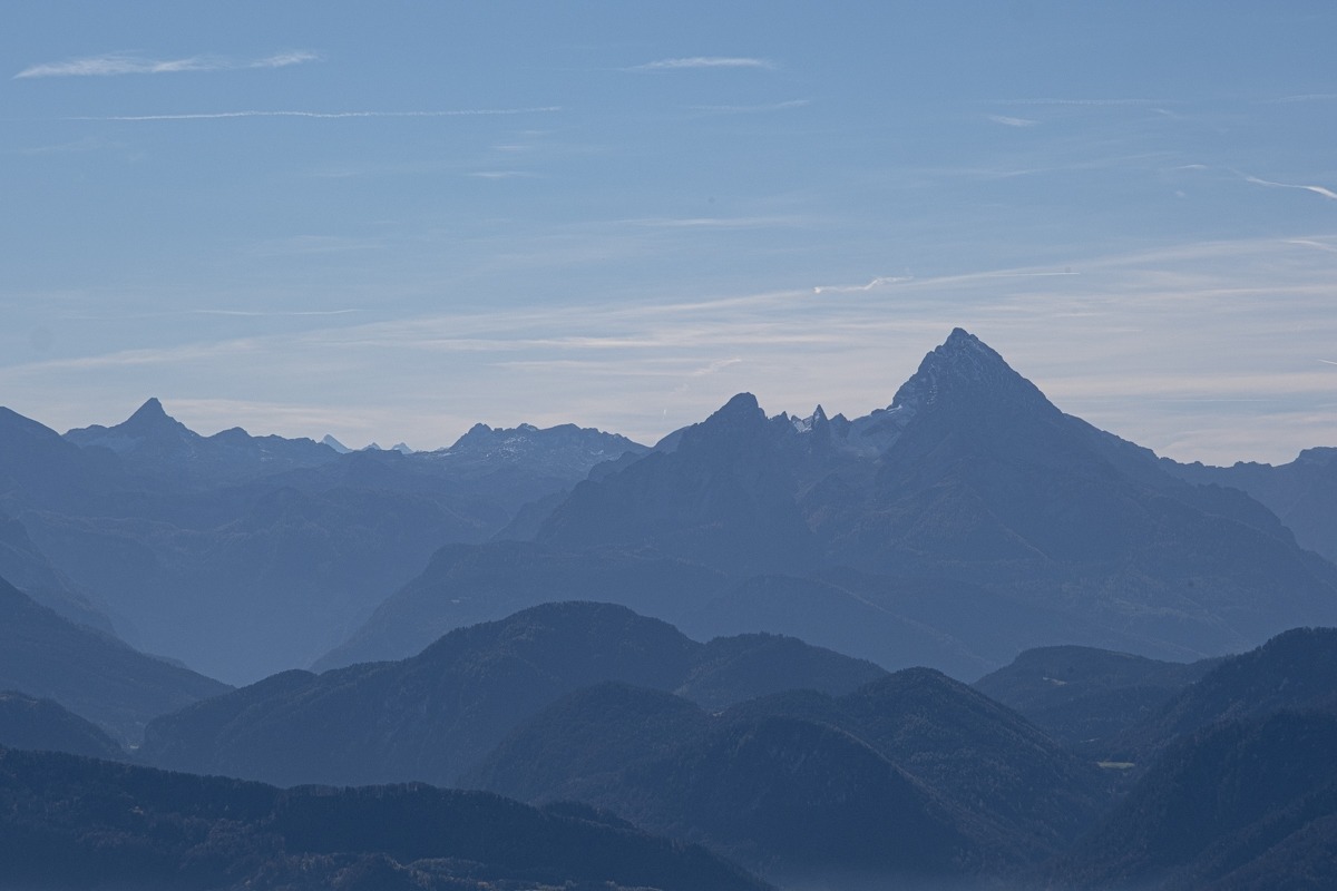 Schon wieder ein Köpfl. Von Kössen fahren wir hoch nach Mühlberg zum Wanderparkplatz, 3€. Wir gehen die Runde im Uhrzeigersinn, auf steiler Straße zu einer Alm und nach links auf dem Steig über Wiesen hinauf und hinüber zur bewirtschafteten Taubenseehütte. Gemäß der alten Bergsteigerregel: „Erst Gipfel, dann Wirtschaft“ schauen wir nicht zur Hütte und erreichen den Taubensee, die Vorboten des Winters sind bereits eingetroffen. Rast, und die letzten Höhenmeter zum Gipfelkreuz des Sonnwendköpfl. Beeindruckende 180° Sicht nach Süden, Leoganger und Loferer Steinberge, Zahmer und Wilder Kaiser und mittendrin das Unterberghorn. Natürlich wieder Rast. Vom Gipfel nach Osten über eine wellige Wiesenfläche mit Almen, sehr idyllisch, und dann der direkte Abstieg nach Süden oberhalb der Dichteralm vorbei und auf der Straße von der Frankenalm und Rinderbralm zum Parkplatz. Mit Gudrun.