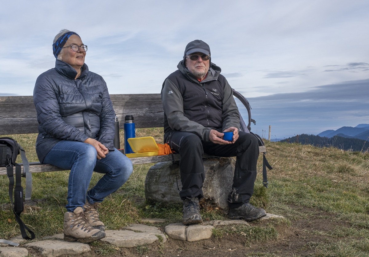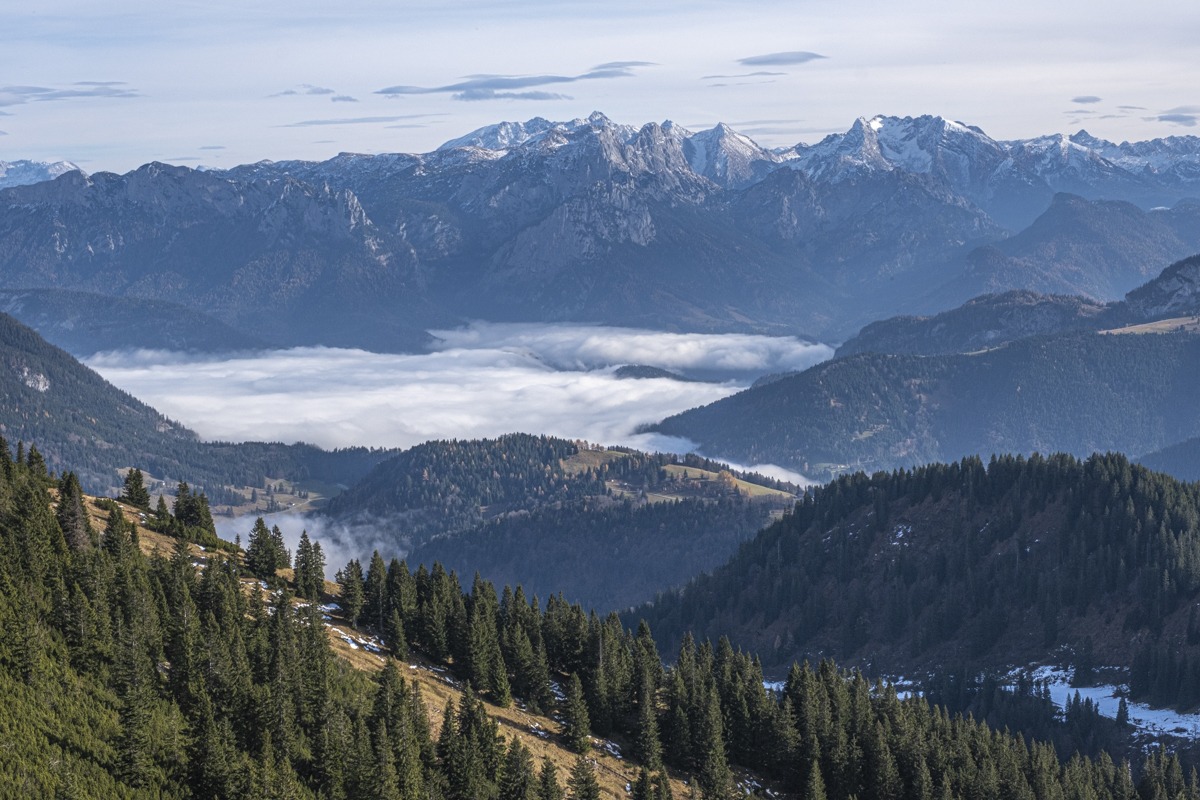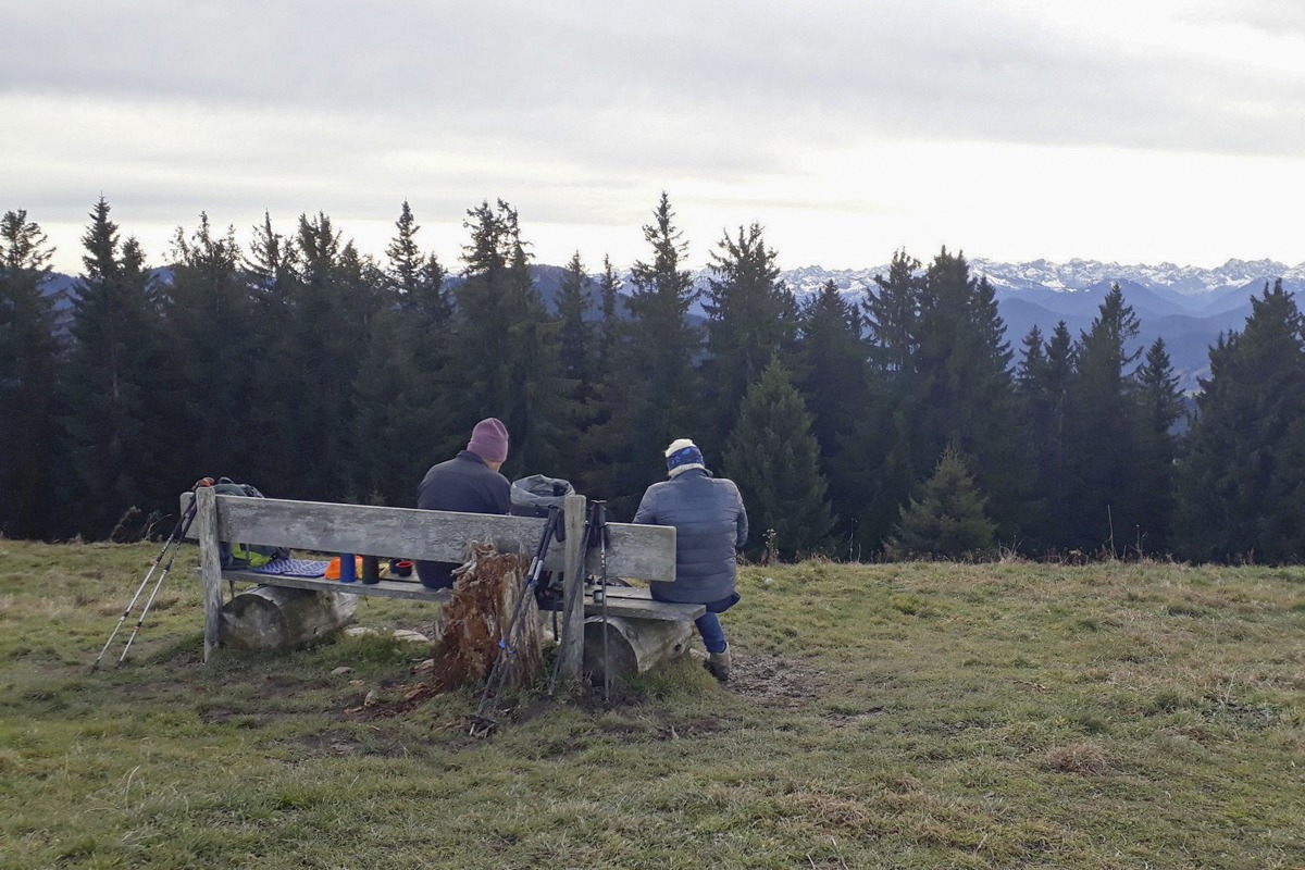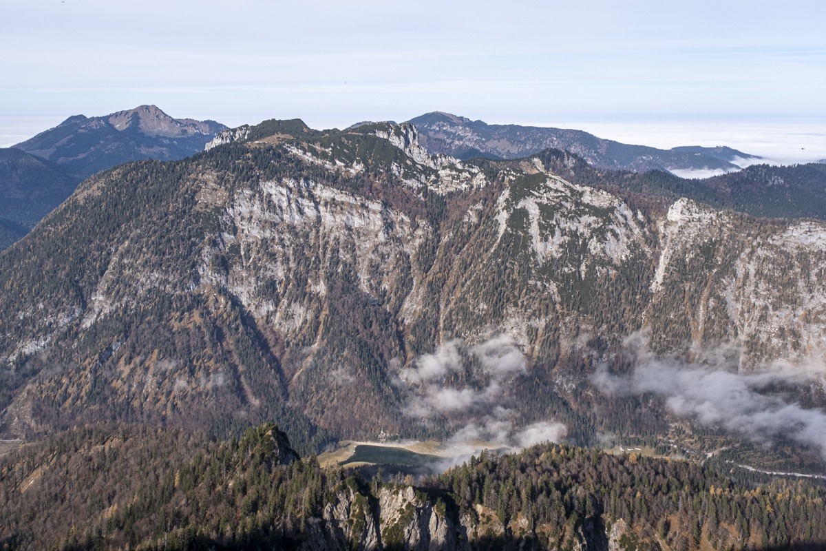 Wieder ist es ein Tag mit strahlend blauem Himmel in den Bergen und grauer Düsternis im Alpenvorland. Wir starten von dem Großparkplatz gegenüber dem Unteren Sudelfeld. Der Aufstieg ist klar vorgegeben: ein nicht zu verfehlender Weg an den Lacheralmen vorbei und hinreichend viele Wanderinnen und Wanderer. Später, hinter einer Hütte, teilt sich der Steig. Wir nehmen den rechten (und steigen über den anderen ab), erreichen den Querweg zwischen Wildalpjoch und Lacherspitze, gehen kurz nach links und stehen vor einer Art Flanke aus Sand/Schotter/Fels, begrenzt von Latschen, die zum Gipfel des Seewandköpfl hinaufzieht. Die Erinnerung an die vergangenen goldenen Zeiten wird aktiviert – damit gelingen die wenigen rutschigen Höhenmeter zum Gipfelkreuz. Viel Platz ist hier oben nicht. Hinunter ebenfalls im Gedenken an vergangenes Erreichtes (hilft aber nicht viel) und mit Sonnenpausen zurück. Mit Gudrun.
