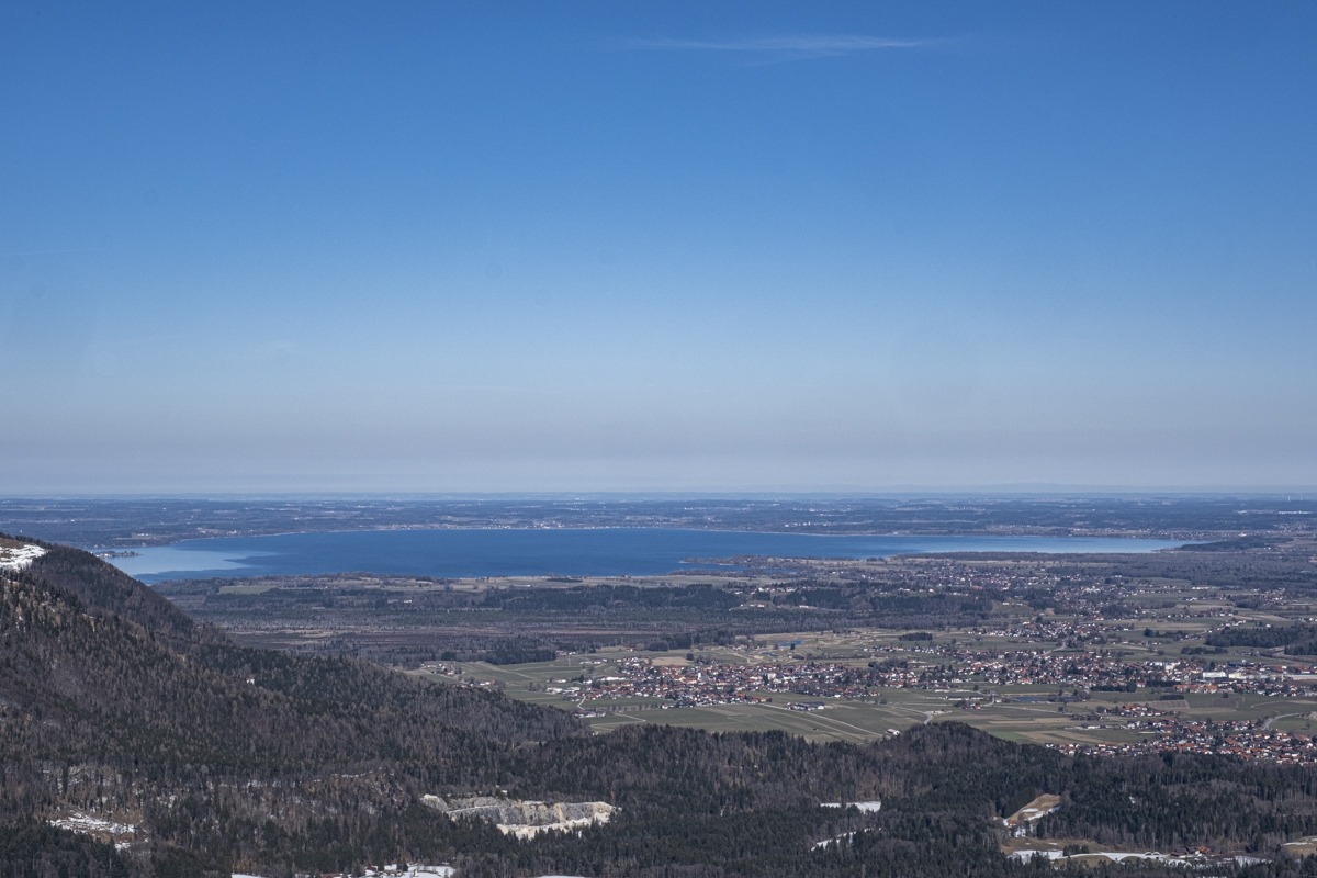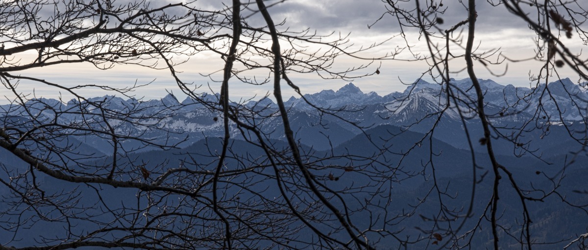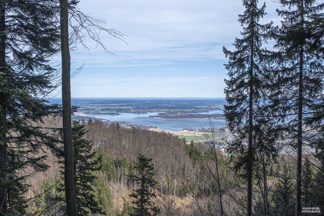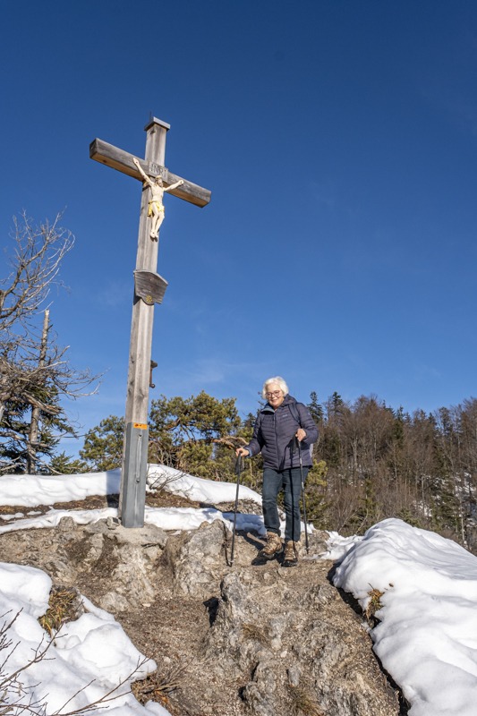 Der Haindorfer Berg ist ein der Kampenwand vorgelagerter Hügel, eine eher kurze Unternehmung. Wir starten in Hintergschwendt und nehmen den nordost- und nordseitigen Anstieg. Die Gipfelwiese (mit Kreuz) ermöglicht den Blick nach Süden, von der Scheibenwand bis zum Hochfelln. Föhnsturm. Der Abstieg erfolgt nach Westen bis zu einer Art Grenzstein, hier auf dem Steig scharf nach rechts. Durch die laublosen Äste sind der Simssee, der Bärnsee und natürlich der Chiemsee zu erkennen. Der Steig mündet in eine Forstraße, die zum Ausgangspunkt zurückführt. Mit Gudrun.