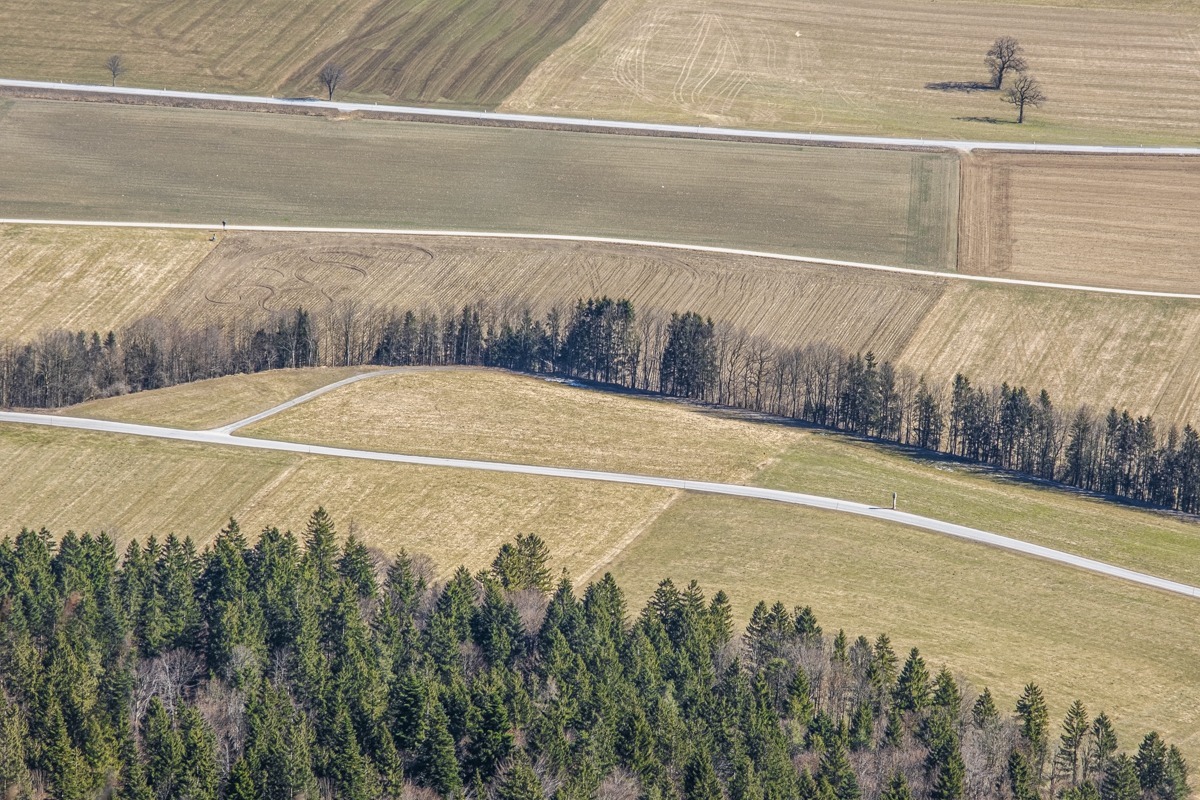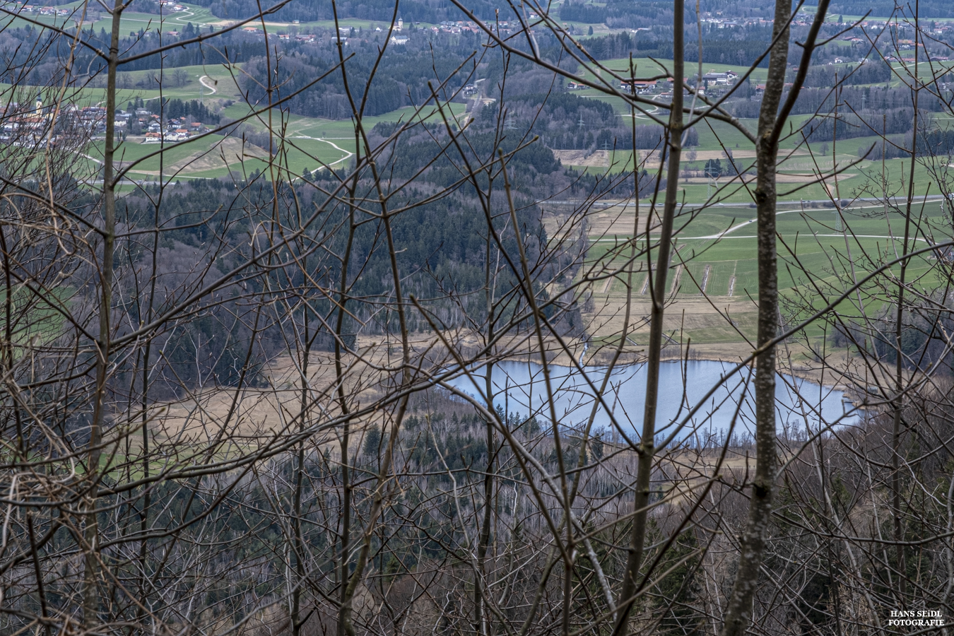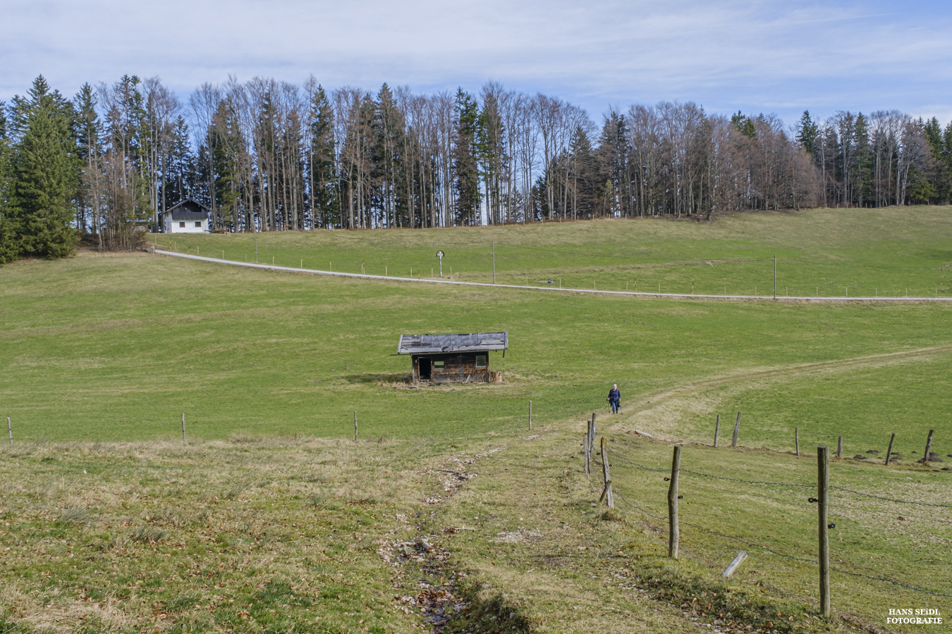 Von Walchsee zum Parkplatz am Moorturm. Der Waldgürtel muss zuerst durchstiegen werden, er endet unterhalb der …