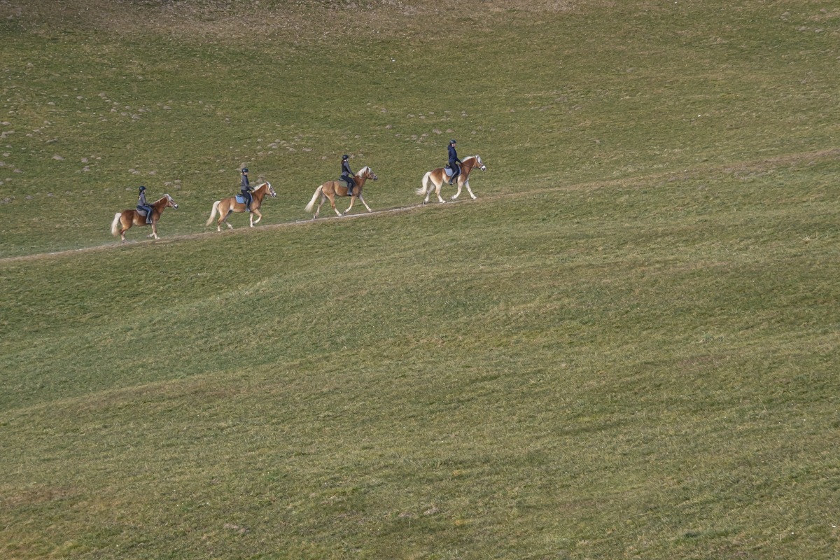 In zwei Sektionen hinauf zur Seceda. Wir machen eine große Schleife nach Osten, an der Pieralongia-Alm und der Slackline vorbei und über einen selbst erkundeten Steig zurück zur Talstation des Fermeda-Sessellifts. Hinauf und auf den Gipfel der Seceda 2519m.