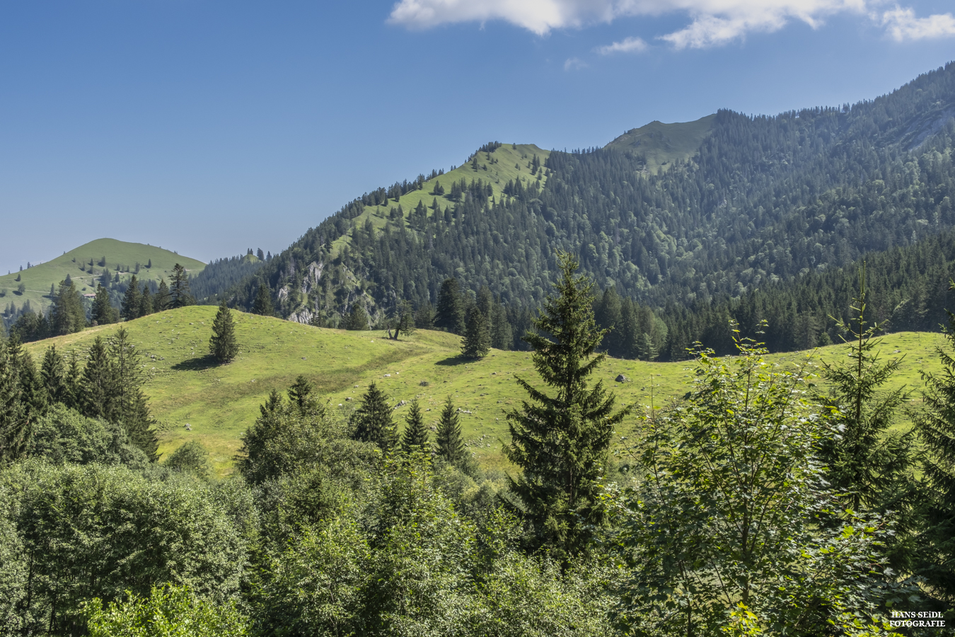 Das Winklstüberl ist verwaist. Über die Weiden – viele Blümchen – und durch Wald geht es hinauf. Unterhalb der Bucheralm weiter nach …